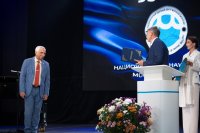 И.Ю. Долматов передал слово для приветствия научному руководителю ННЦМБ ДВО РАН - академику А.В. Адрианову. «У меня есть несколько поручений – из Министерства науки и высшего образования Российской Федерации – нашего учредителя, из Российской академии наук, которые попросили передать всем вам поздравительные адреса», - сообщил Андрей Владимирович. «Мне всегда приятно от нашего учредителя слышать такие слова, что Национальный научный центр морской биологии стал флагманом морской биологии не только на Дальнем Востоке России, но и вошел в число ведущих научно-исследовательских организаций нашей страны. Вы должны гордиться своими традициями, масштабными исследованиями Мирового океана. Министерство желает нам и в дальнейшем продолжать такую работу и выражает искреннюю благодарность всему коллективу, каждому сотруднику за ваш высококвалифицированный труд на благо отечественной и мировой науки. Приветственный адрес от Министерства науки и высшего образования Российской Федерации подписал заместитель Министра Дмитрий Владимирович Пышный. Есть у нас и адрес от нашего профильного Департамента, курирующего наши научные центры – это Департамент координации деятельности научных организаций. Здесь очень много теплых слов и поздравлений, коллеги отмечают, что коллектив не только продолжает дело отцов-основателей, но и уверенно идет дальше, вовлекая молодежь в научные исследования, развивая международные связи. Коллеги выражают искреннюю благодарность коллективу Центра и желают и впредь оставаться флагманом морской биологической науки».