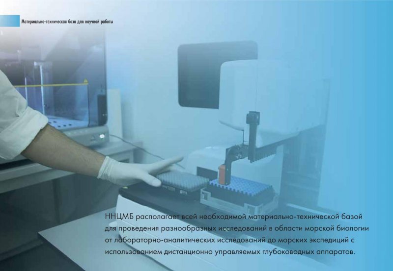 Презентационный буклет расскажет вам о нашем Центре, обо всех возможностях, предоставляемых здесь. ННЦМБ ДВО РАН сегодня – это уникальный научно-исследовательский комплекс, имеющий большой авторитет в России и за рубежом и занимающийся актуальными проблемами в области биологического разнообразия и экологии, молекулярной и клеточной биологии, биохимии, генетики, биологии развития, биотехнологии, фармакологии, биомедицины на всех уровнях организации живой материи.